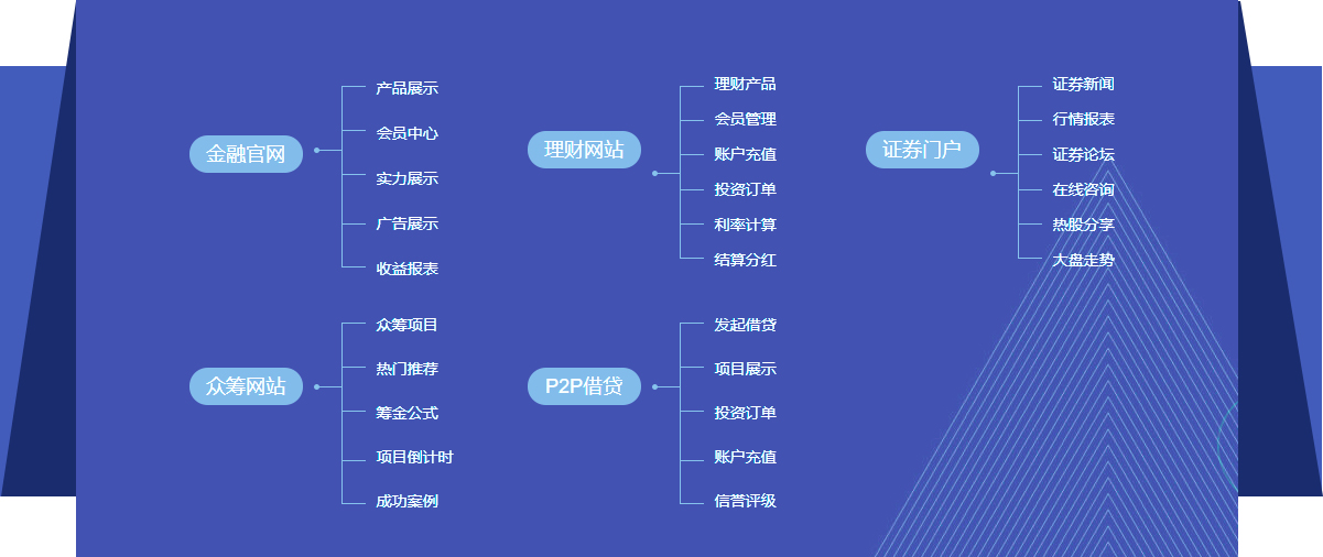 金融行業(yè)包括銀行業(yè),證券業(yè),保險業(yè)等金融服務企業(yè)。網(wǎng)站內(nèi)容主要展示企業(yè)的形象,金融產(chǎn)品介紹,衍生產(chǎn)品優(yōu)勢,以及服務理念。同時網(wǎng)站上要及時公布市場新聞,行情信息,以滿足客戶的需要,增加客戶的粘合度,和忠誠度。