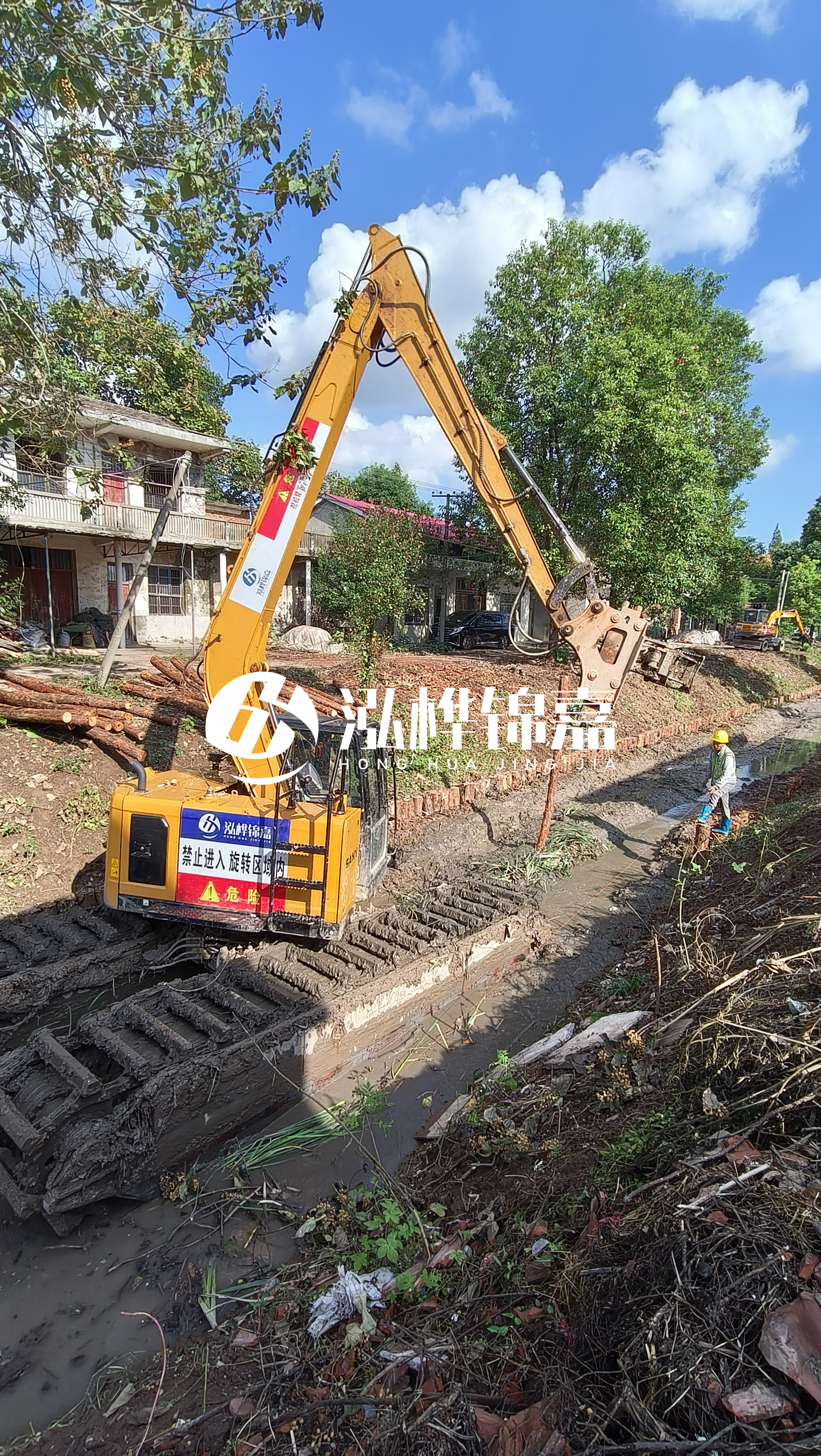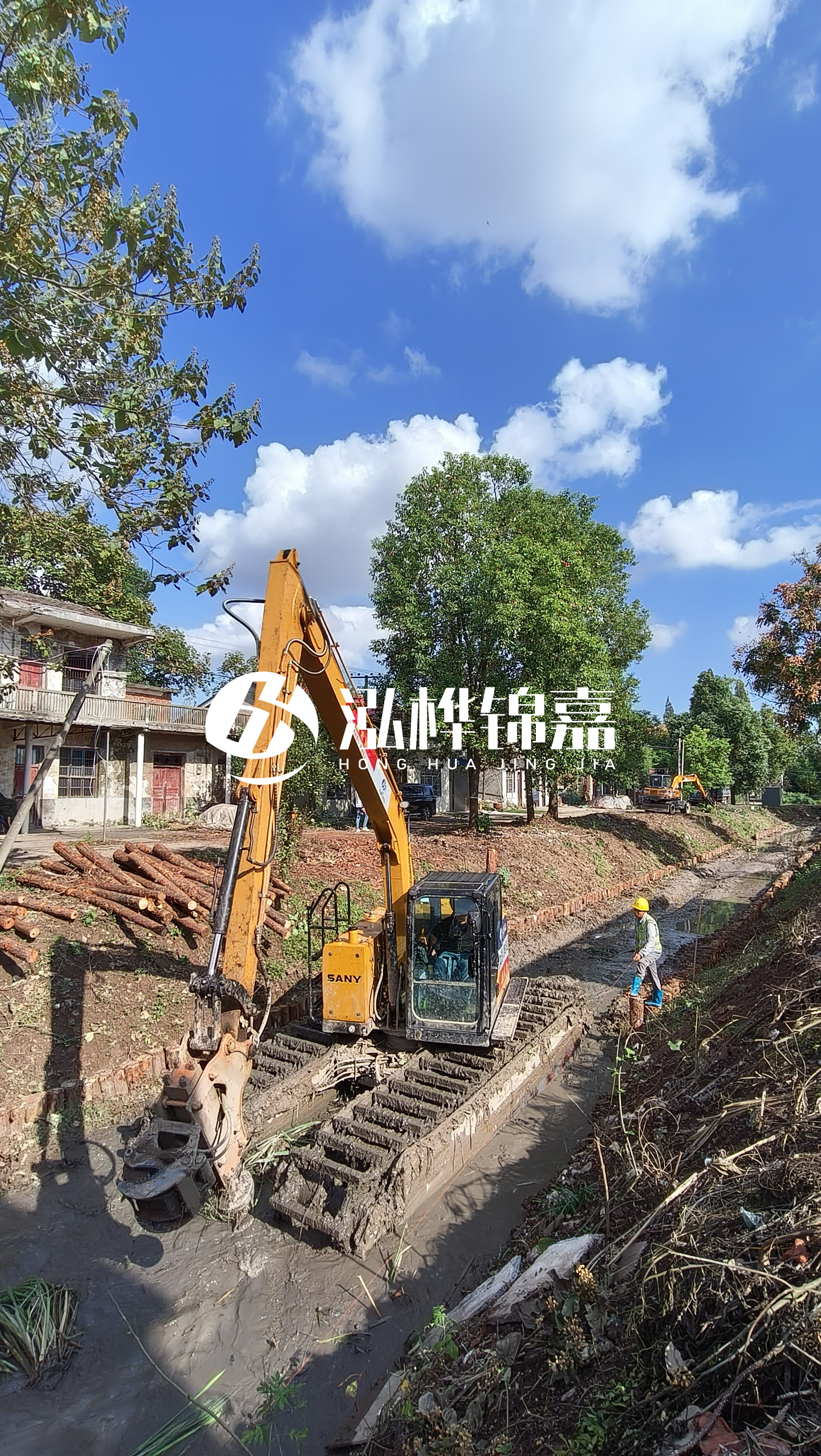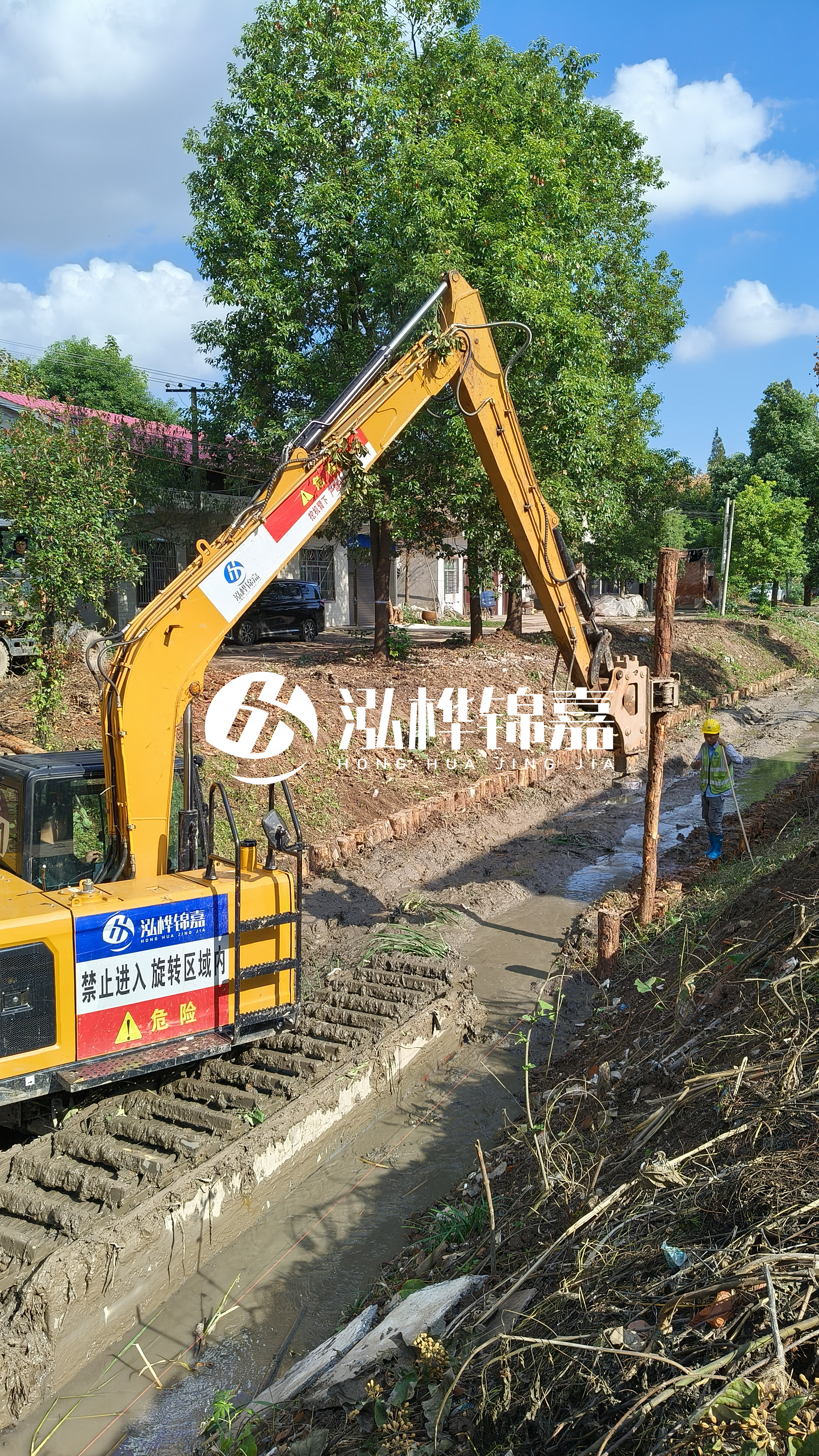 通化挖機打木樁專業(yè)施工-水挖機河道清淤如何打木樁?