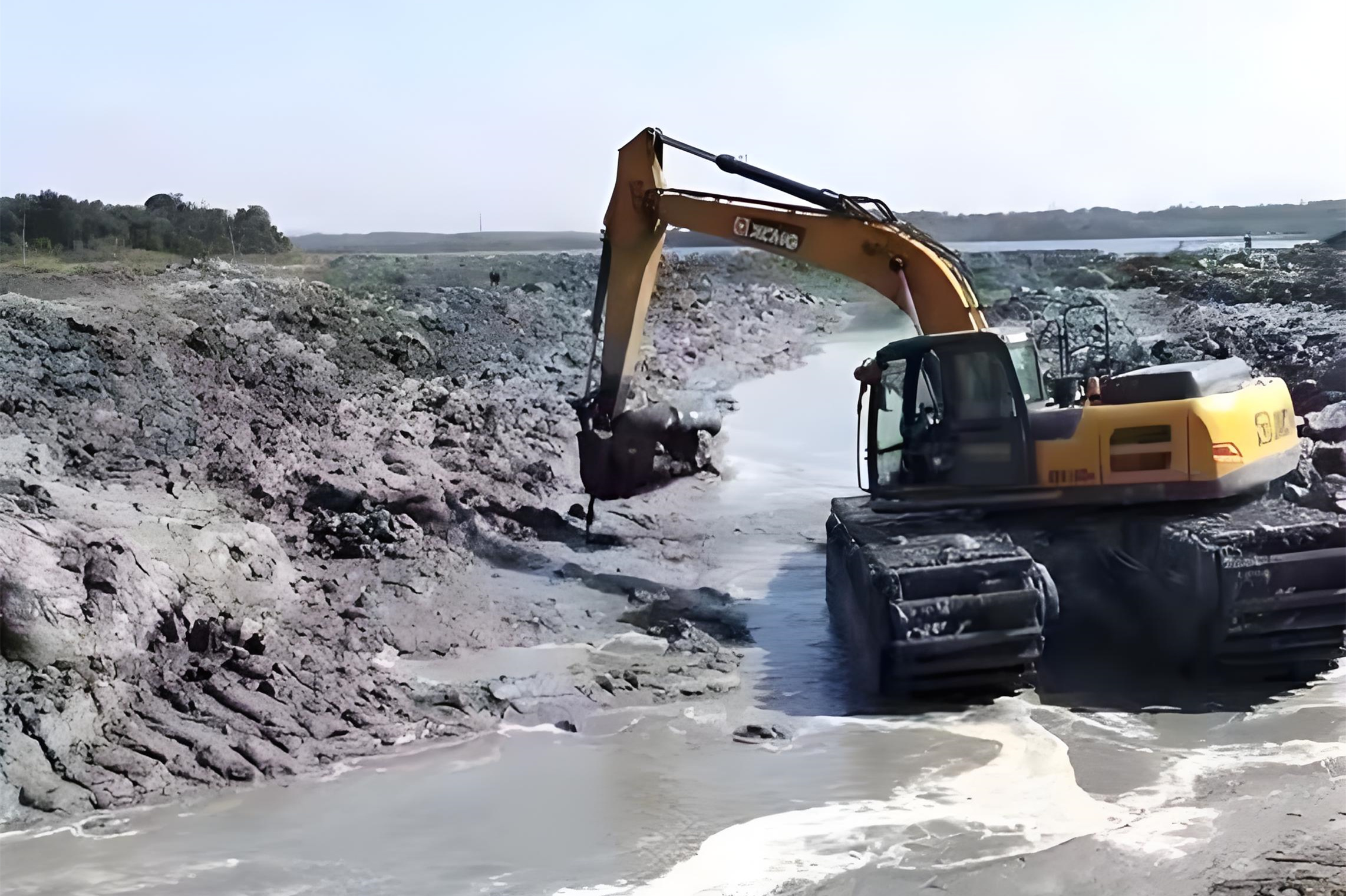 淤泥的粘稠度也很影響。稀泥像粥一樣,挖斗一挖就能提上來,速度快;要是淤泥里混著硬土塊、碎石,甚至有樹根纏繞,挖斗得反復撬動,還容易卡料,效率起碼打五折。
