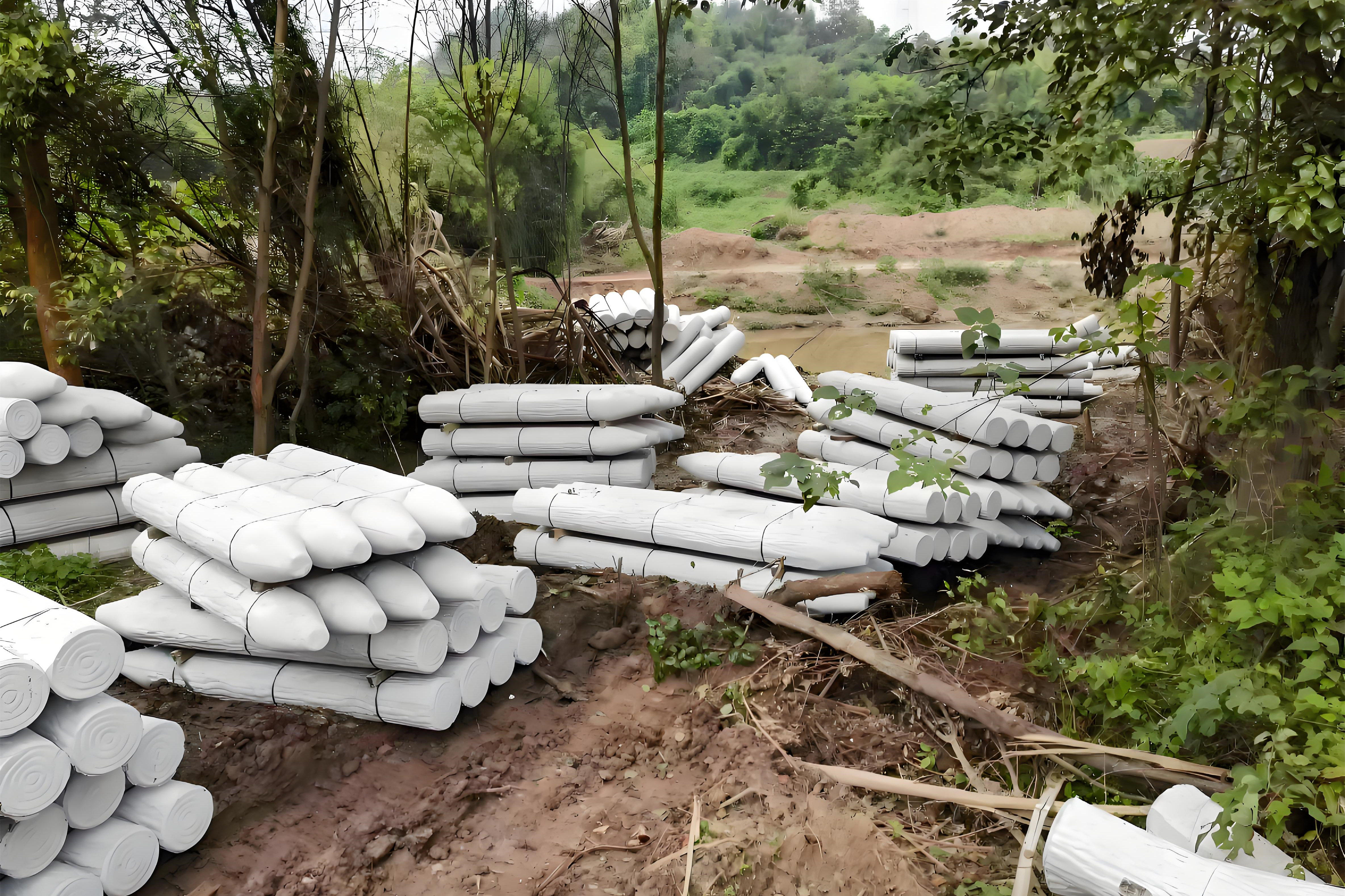 - 原料配比:劣質(zhì)水泥 + 少鋼筋,耐用性直接打折扣:有些小廠家為了省成本,用低標號水泥(比如 C20 以下)、減少鋼筋用量,甚至不加鋼筋,這樣做出來的仿木樁看似外觀一樣,實際強度差很多 —— 用不了 3 年就可能出現(xiàn)裂縫,遇到暴雨、洪水還會斷裂。泓樺錦嘉的水泥仿木樁都是用 C30 以上水泥,每根樁里都按標準加了螺紋鋼筋,出廠前還會做抗壓測試,確保強度達標,這也是我們的樁能耐用 15 年以上的核心原因。